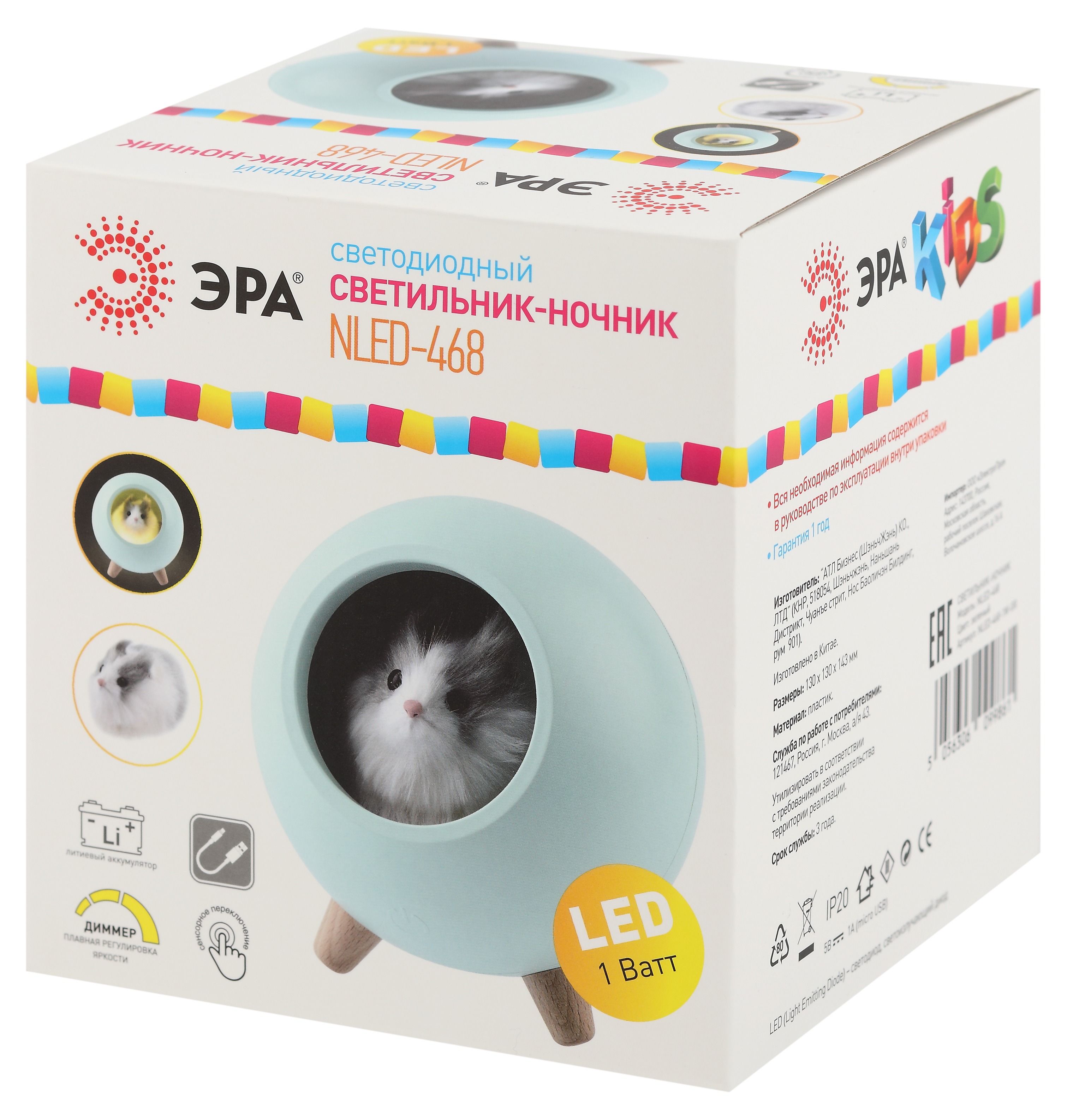 Ночник - светильник светодиодный ЭРА NLED-468-1W-GR хомяк зеленый