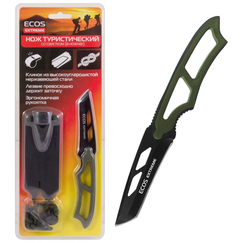 Нож туристический со свистком (в ножнах) EX-SW-B01G ECOS зеленый