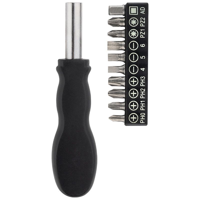 Отвертка с набором бит, 11 предметов, пластиковые рукоятки