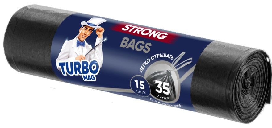 Пакеты для мусора "TURBOMAG" STRONG с завязками ПВД 18 мкм 35 л 15 шт.