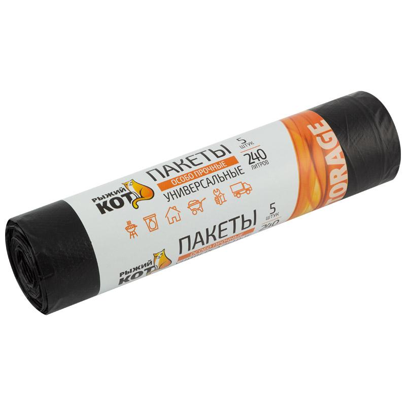 Пакеты универсальные 240л (5шт./рул.) особо прочные, ПВД, черные, 43мкм