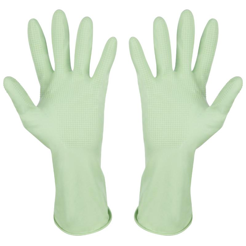 Перчатки латексные с хлопковым напылением, зеленые, размер M