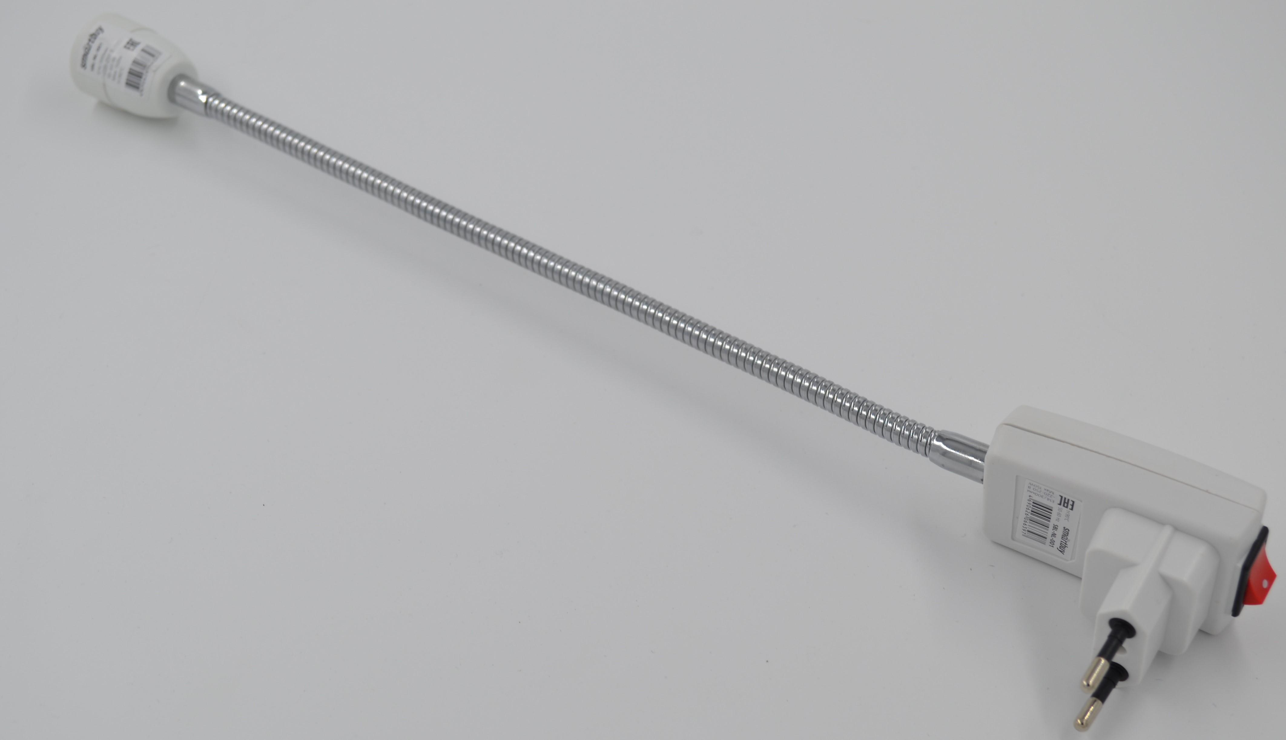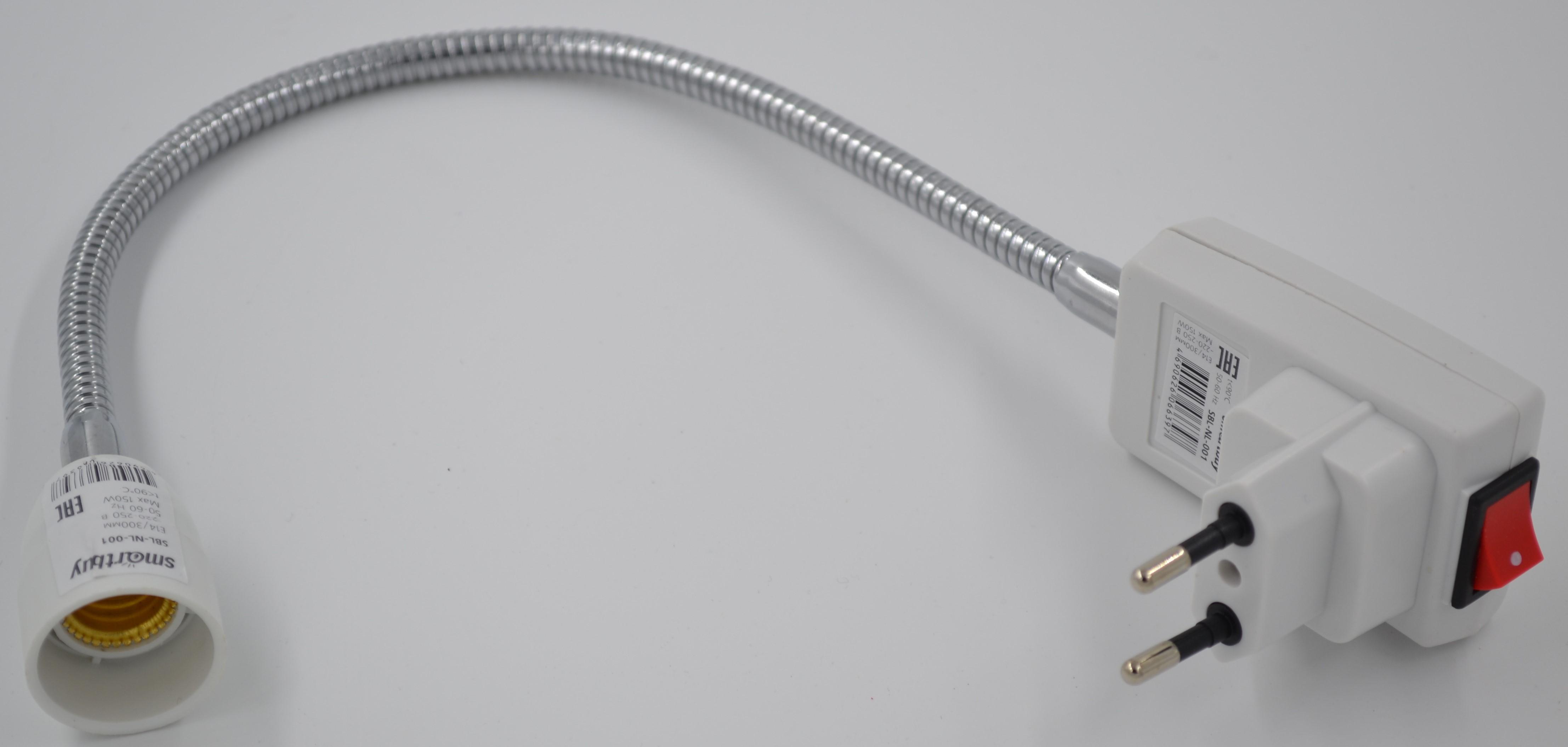 Переходник вилка-патрон Е14 гибкий 300мм с выключателем, белый (SBL-NL-001)