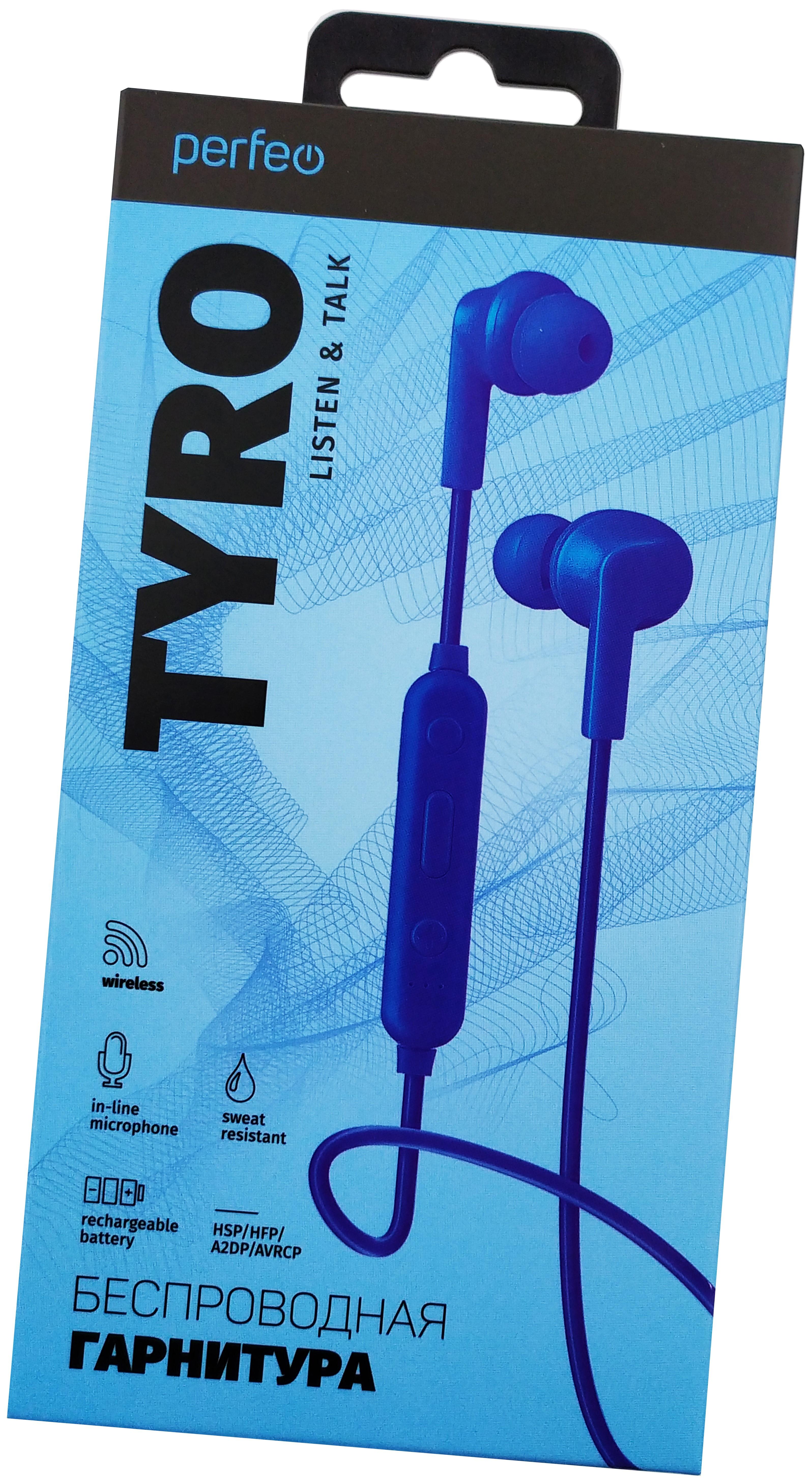 Perfeo BT наушники внутриканальные с микрофоном TYRO синие