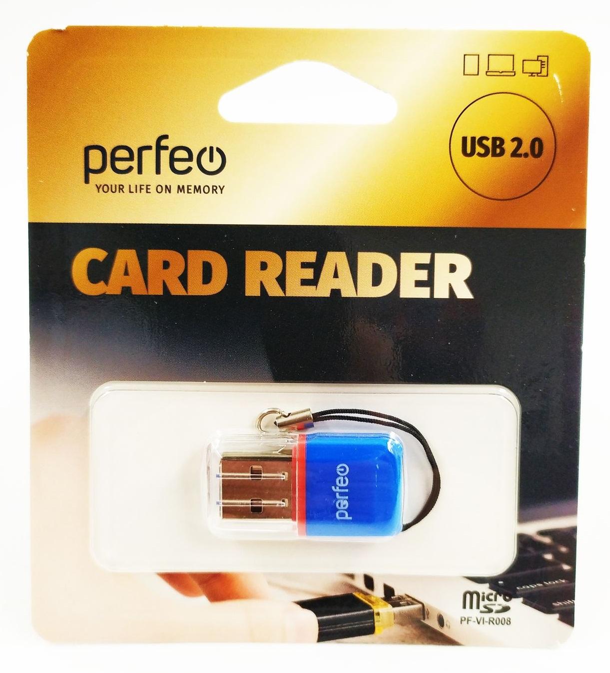 Perfeo Card Reader Micro SD, (PF-VI-R008 Blue) синий
