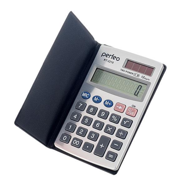 Perfeo калькулятор KT-2218, карманный, 12-разр., серебристый, чехол