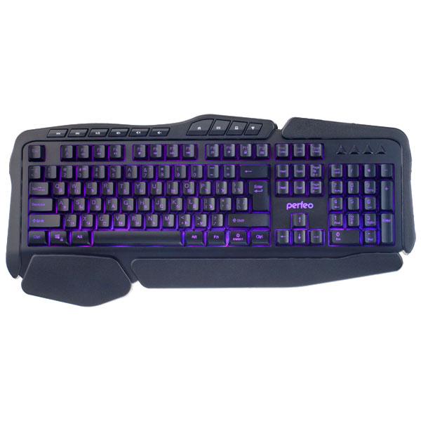 Perfeo клавиатура "STRIKE" Multimedia, GAME DESIGN, подсв. 3 цвет, USB, чёрный