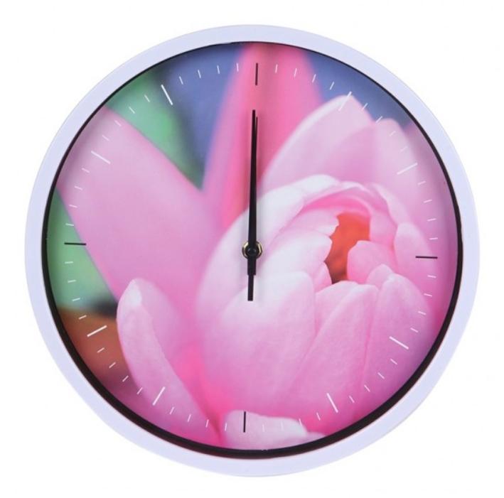 Perfeo Настенные часы "PF-WC-003", круглые д. 30 см, белый корпус / Тюльпаны циферблат