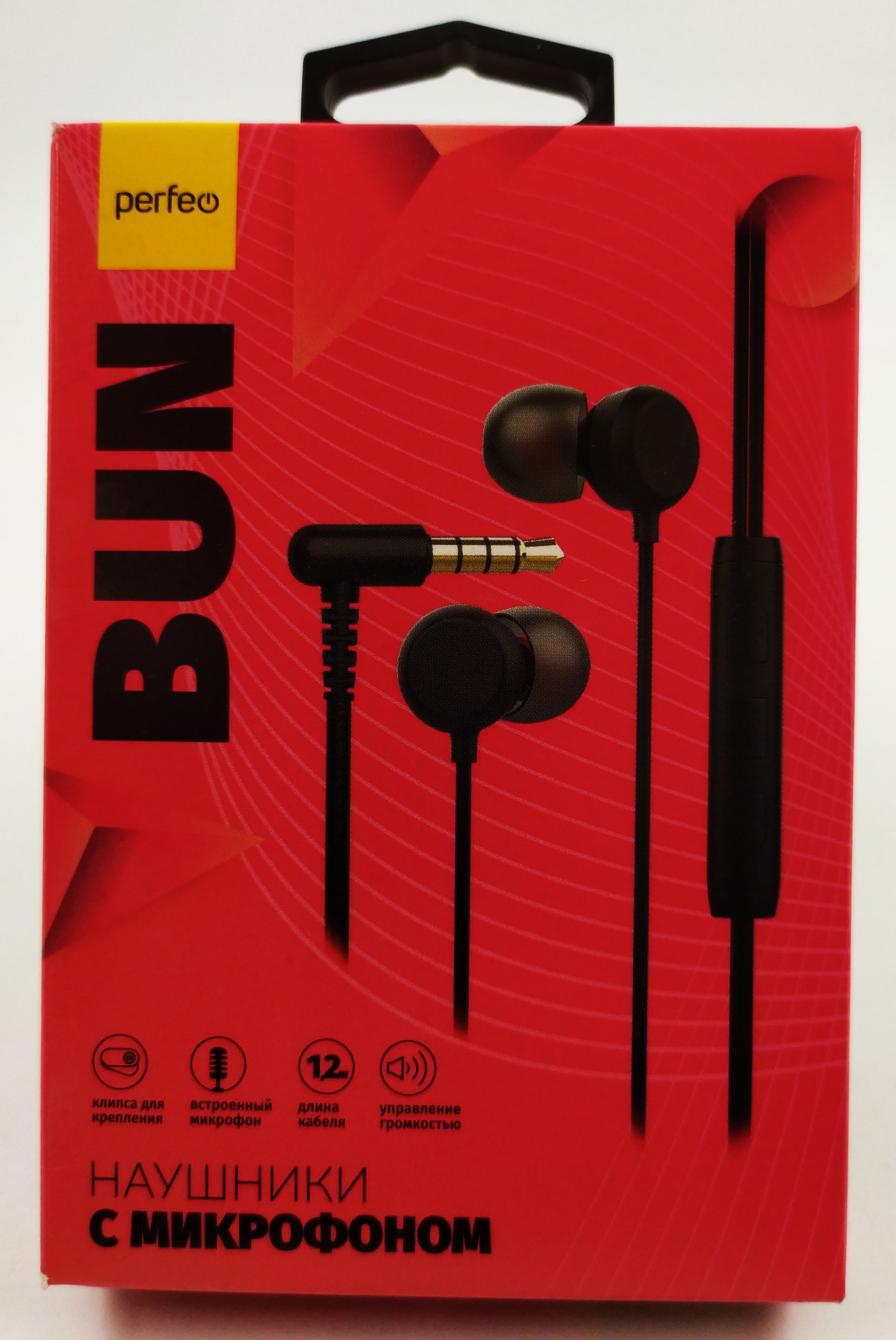 Perfeo наушники внутриканальные c микрофоном BUN черные управление звуком