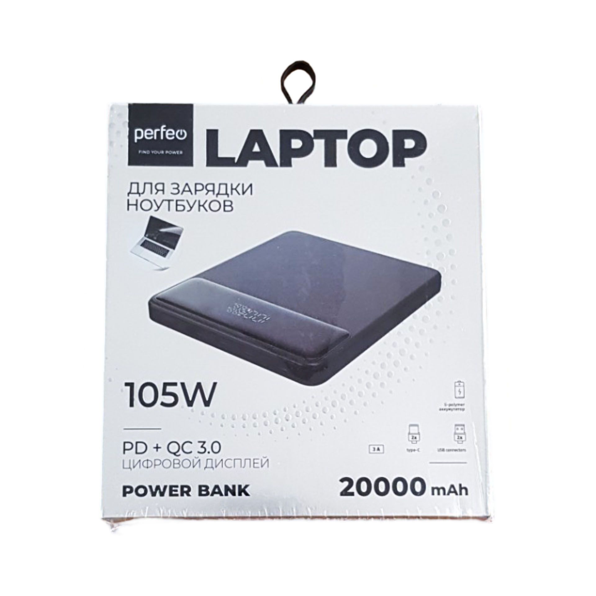 Perfeo Powerbank LAPTOP 105W 20000 mAh/LED дисплей/PD + QC 3.0/2 Type-C/2USB/Выход: 5A,max105W Black