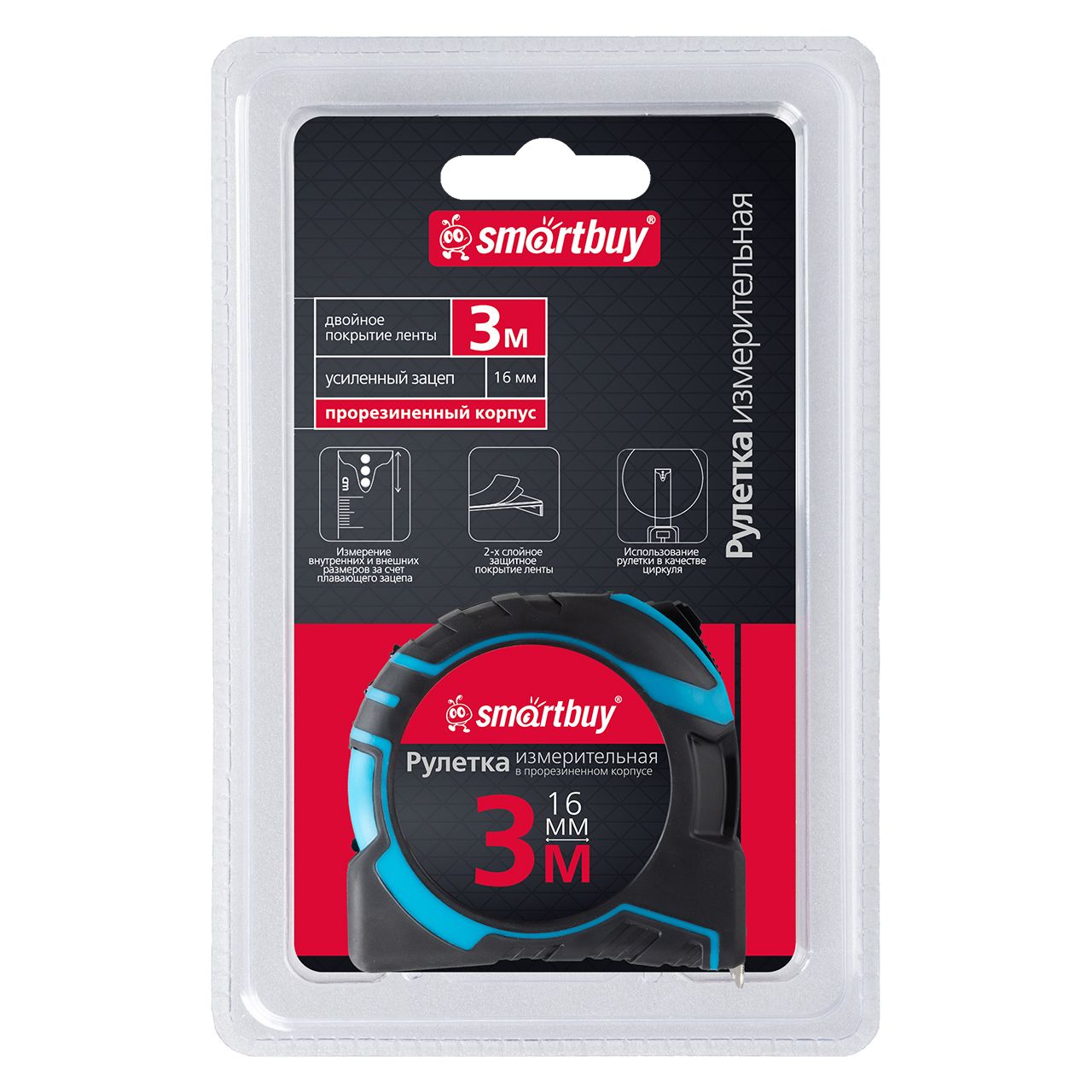 Рулетка измерительная, 3мх16мм, прорезиненный корпус,противоуд., усиленный зацеп,SmartbuyTools