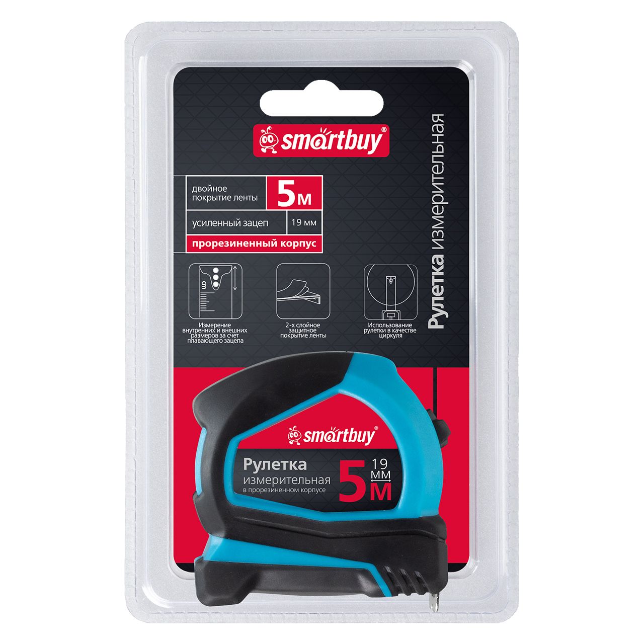 Рулетка измерительная, 5мх19мм, прорезиненный корпус,противоуд., усиленный зацеп,SmartbuyTools