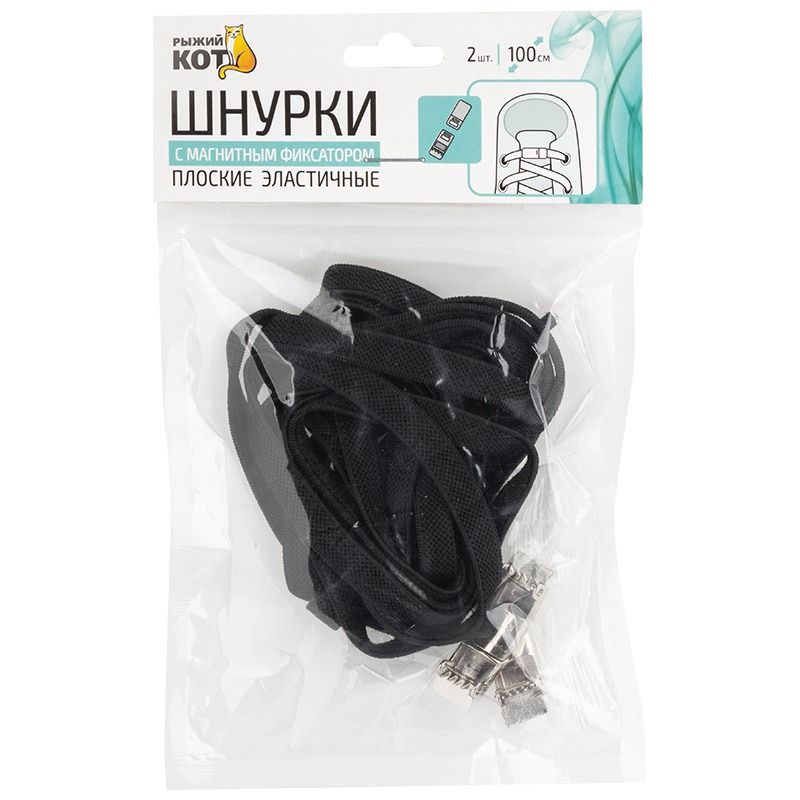 Шнурки с магнитным фиксатором плоские эластичные, цвет черный