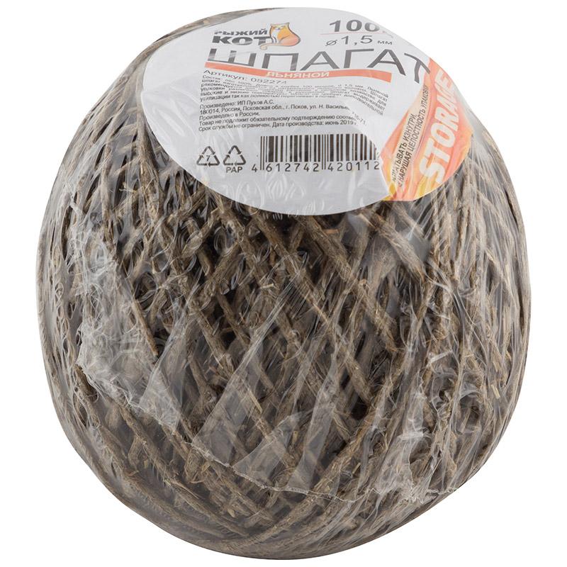 Шпагат упаковочный льняной D1,5мм 100 м (клубок)