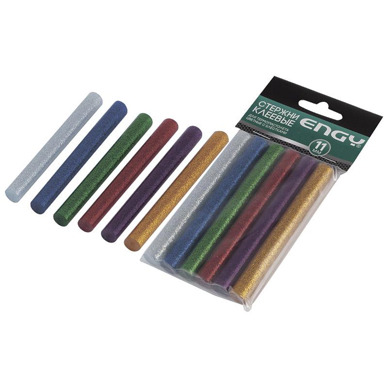 Стержни клеевые цветные, с блестками,11х100 мм, 6 шт