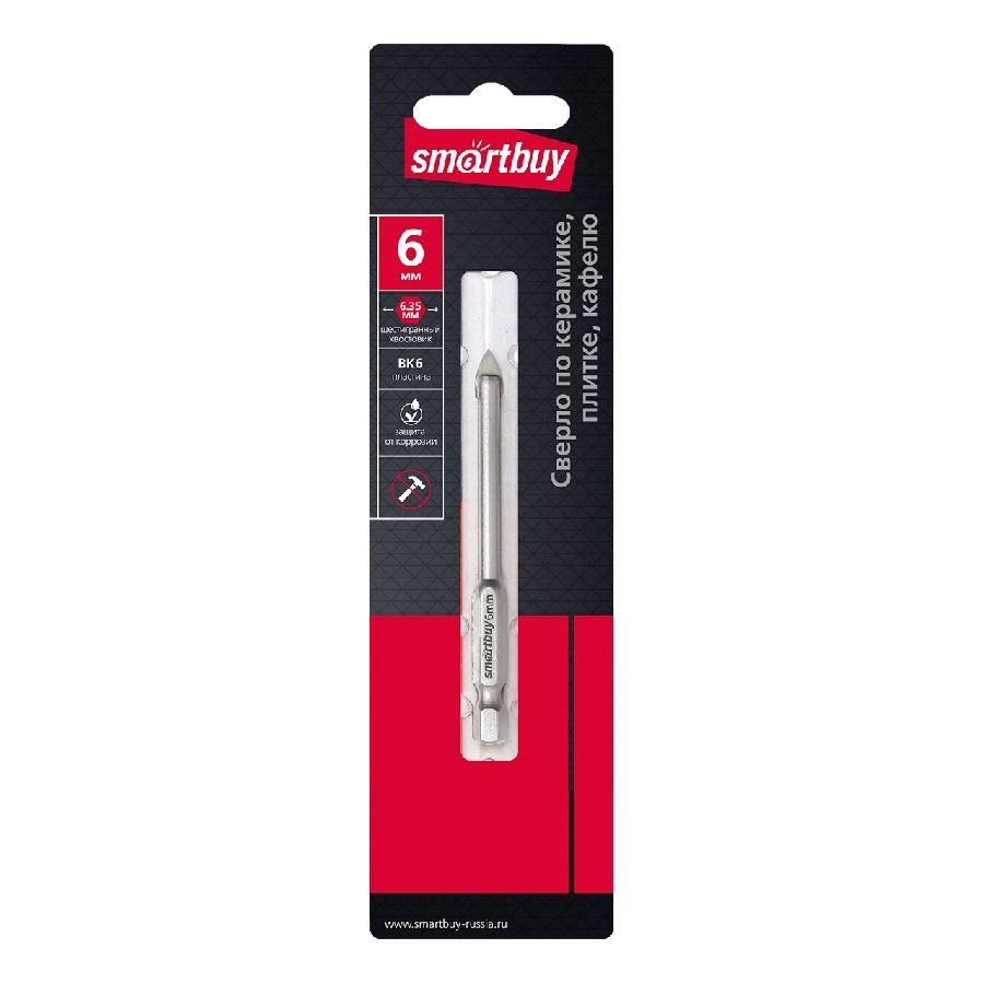 Сверло 6 мм по кафелю, плитке, керамограниту, твердосплавный наконечник, Smartbuy tools