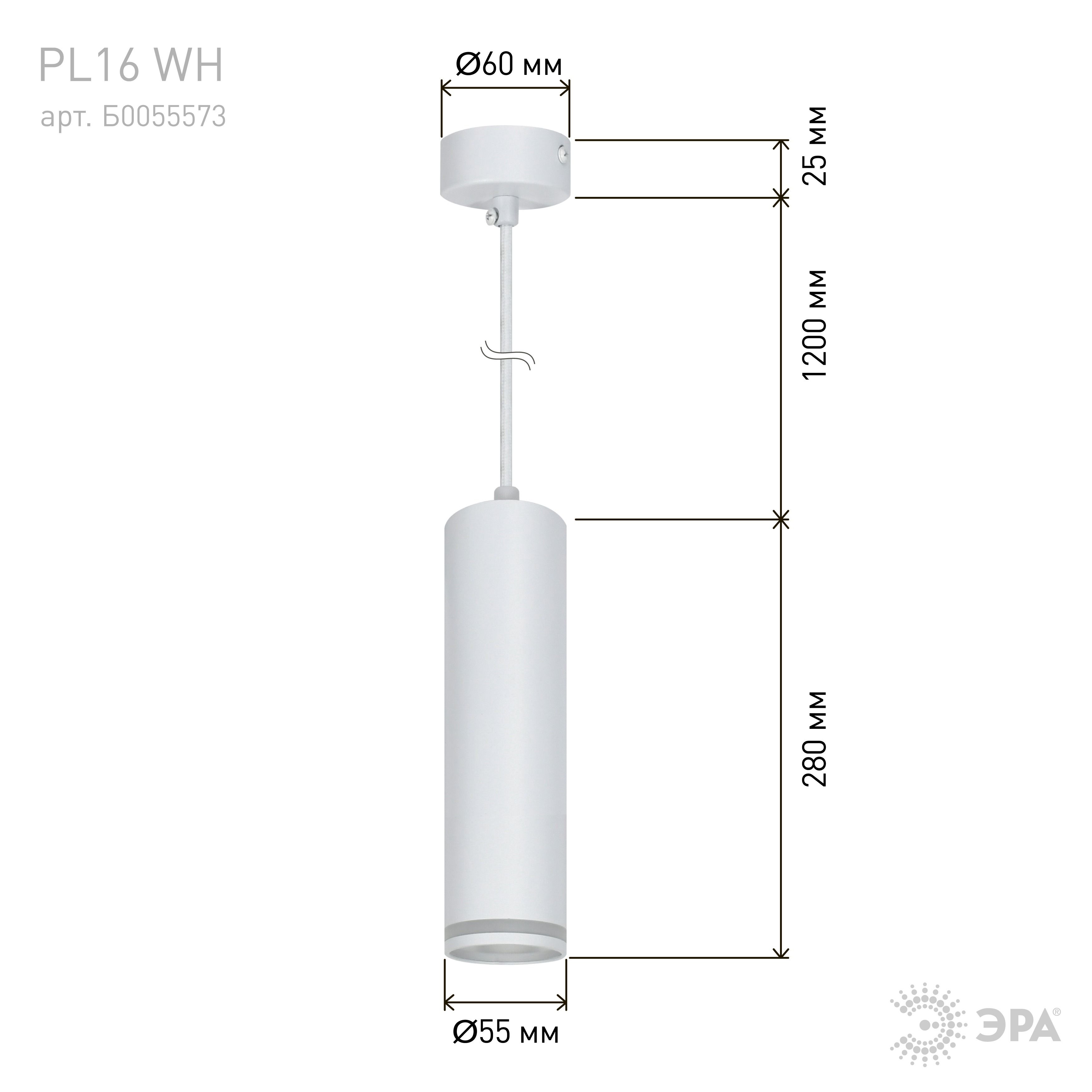 Светильник подвесной (подвес) ЭРА PL16 WH MR16/GU10, белый, потолочный, цилиндр