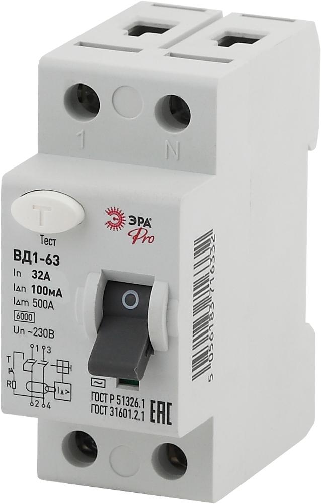 УЗО ВД1-63 Электромеханическое 1P+N 32А 100mA NO-902-58 ЭРА Pro