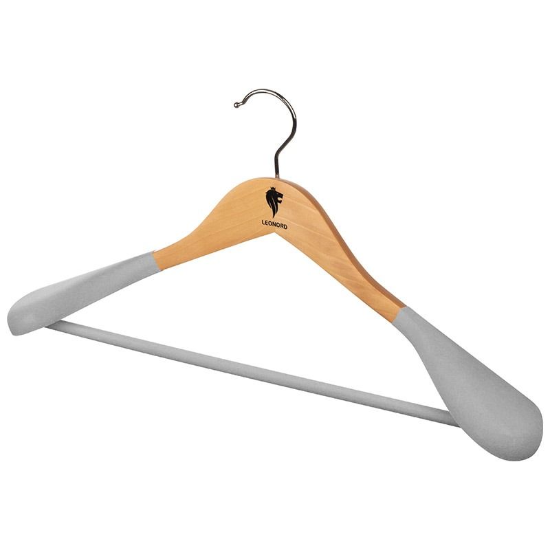 Вешалка деревянная с широкими плечами, флокированная, светлое дерево