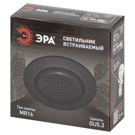 Встраиваемый светильник алюминиевый ЭРА KL109 BK MR16 GU5.3 черный матовый