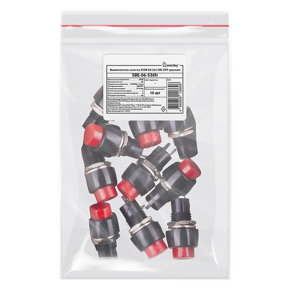Выключатель-кнопка 250В 6А (2с) ON-OFF красная (SBE-06-S36fr)