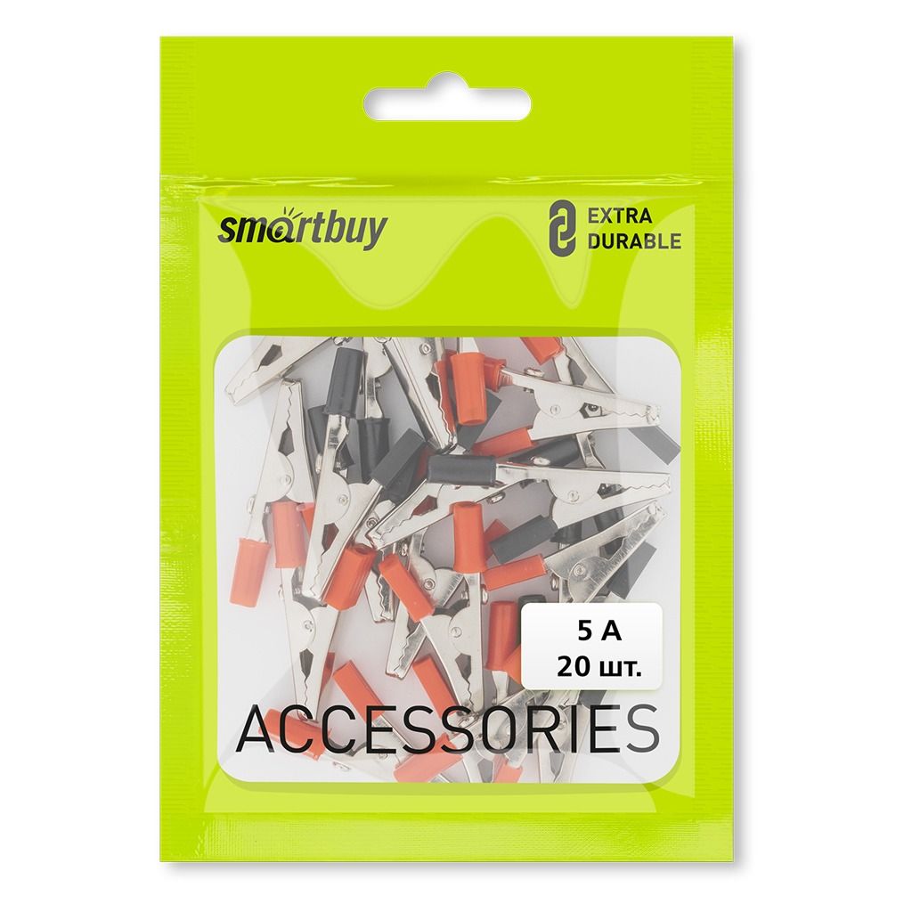 Зажим Крокодил (красн.+черн.) 5А 55мм 20 шт (SBT-KCL555)
